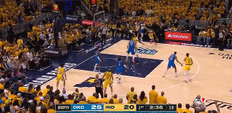 6月12日讯 NBA总决赛G3,步行者半场64-60领先雷霆。